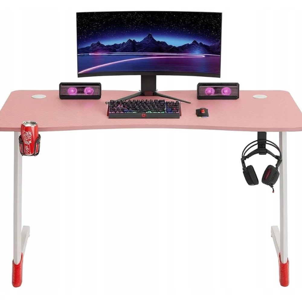 Gamer asztal RGB háttérvilágítással – 120×60 cm | Pohártartó + Fejhallgató akasztó