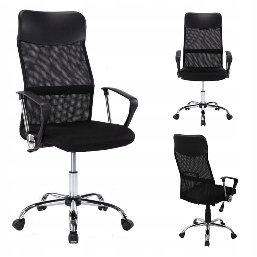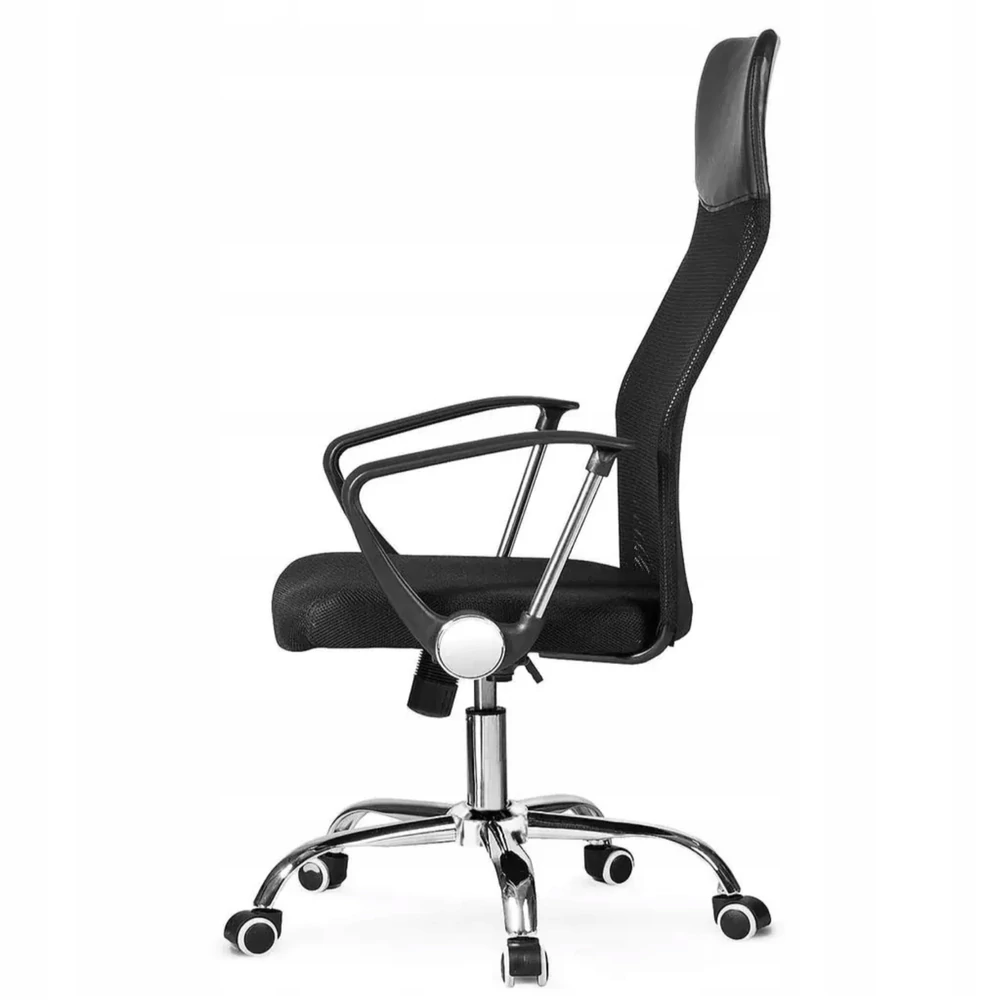 A fotel kiváló minőségű ökológiai bőrből és puha, rugalmas fekete hálóból készült. A króm alap stabilitást biztosít, a kerekek pedig nem karcolják a padlót.